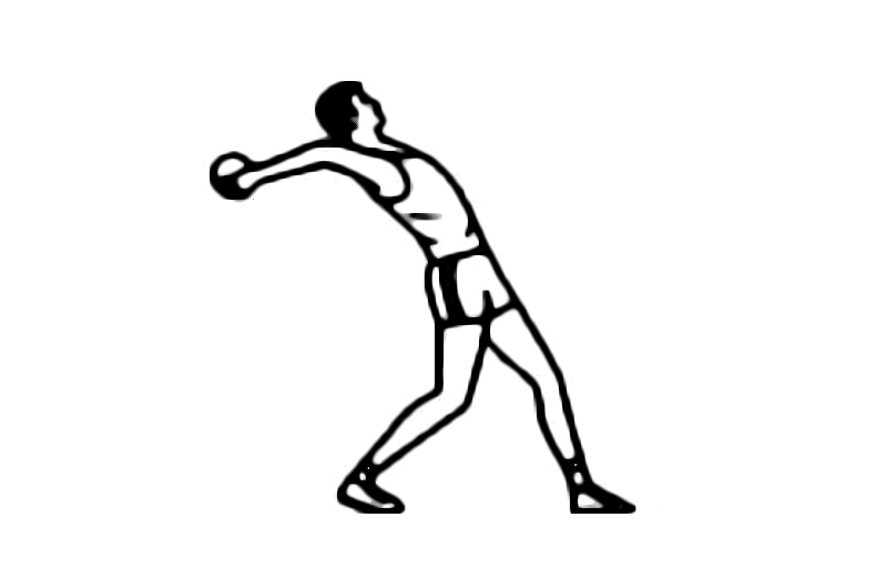 实心球就用投铅球的方法,由脚蹬地到转髋再到手臂