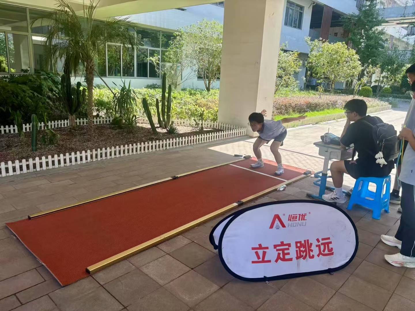 注意:立定跳远必须直臂摆动